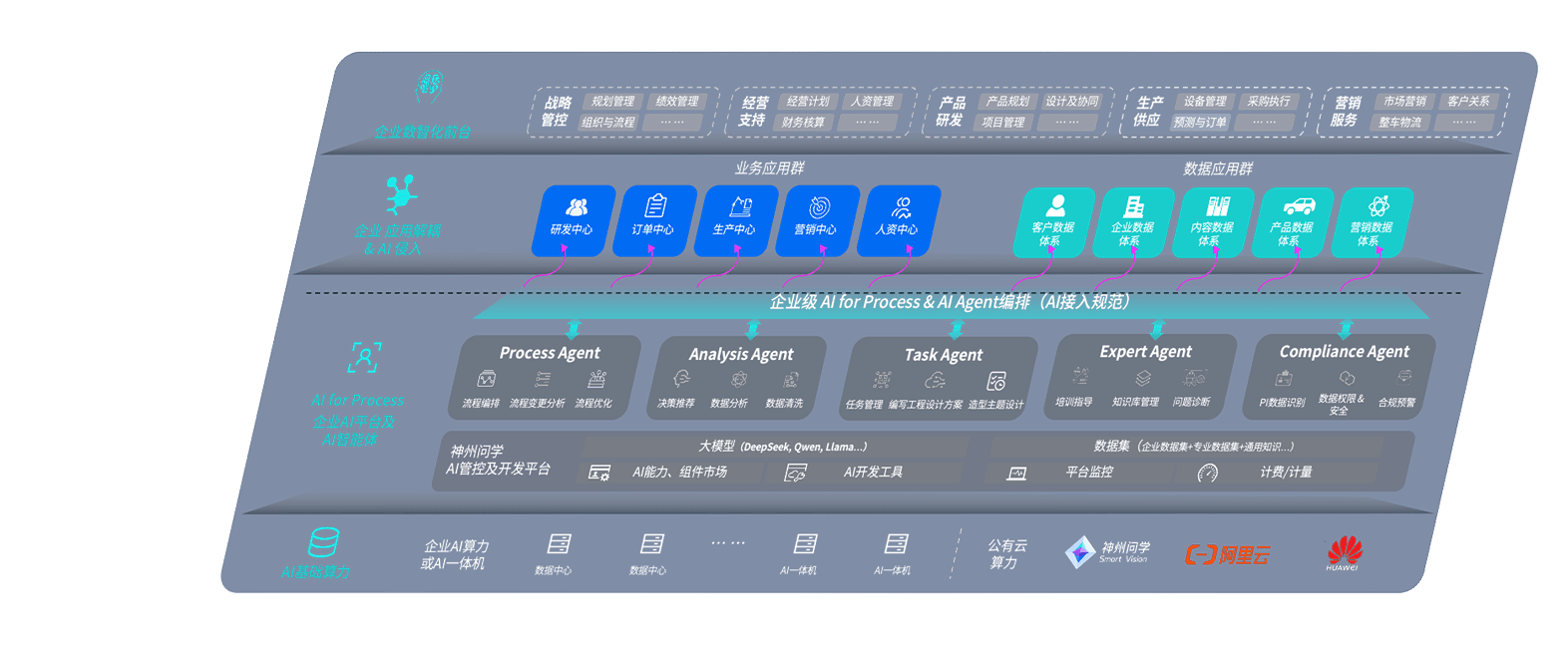 大发平台问学智车解决方案是一套基于AI技术的汽车行业智能化系统,,覆盖从底层算力到顶层AI应用的全栈方案。。。。方案由算力层、、模型层和应用层组成:算力层,,方案支持多种一体机配置,,,具备云端灵活部署、、、、多云适配以及动态优化计算资源的能力;模型层,,,,大发平台问学平台版提供了企业级AI应用一站式构建与管理平台,,,支持基于后训练强化技术的汽车企业专属模型的训练、、、评测和运营;应用层,,大发平台问学DeepSeek版提供包括超级员工、、、智能招采、、、、智能营销、、、智能客服、、、AI for BI等一系列解决方案,,,可助力汽车行业实现数字化转型,,,让管理更智能、、响应更敏捷。。。